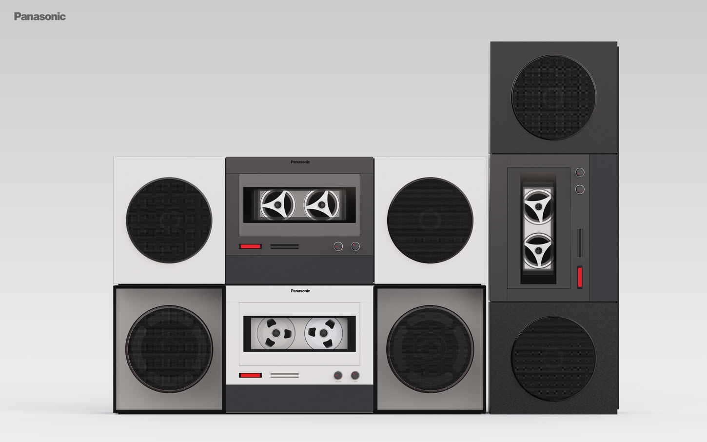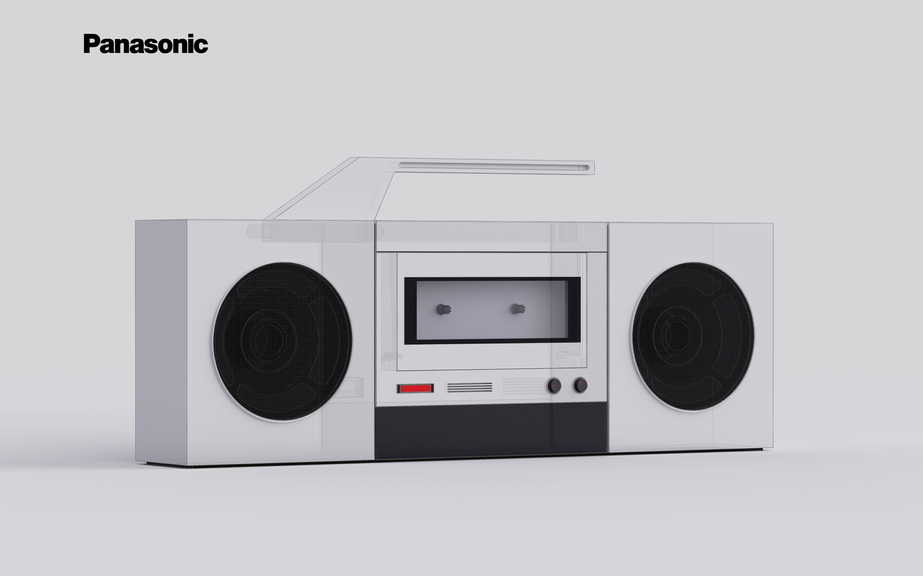 This is a stereo that retains some of the original physical buttons and mechanics of the old boombox, created according to the Panasonic design language. The cassette is designed to be used as a hard disk for storing music with the boombox.